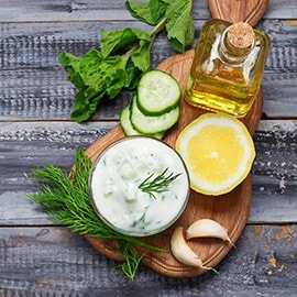 試著選用無脂的希臘優格或是低脂的美乃滋、檸檬汁、孜然和香菜做成沙律沾醬。